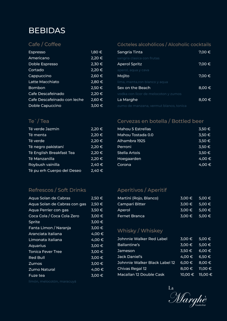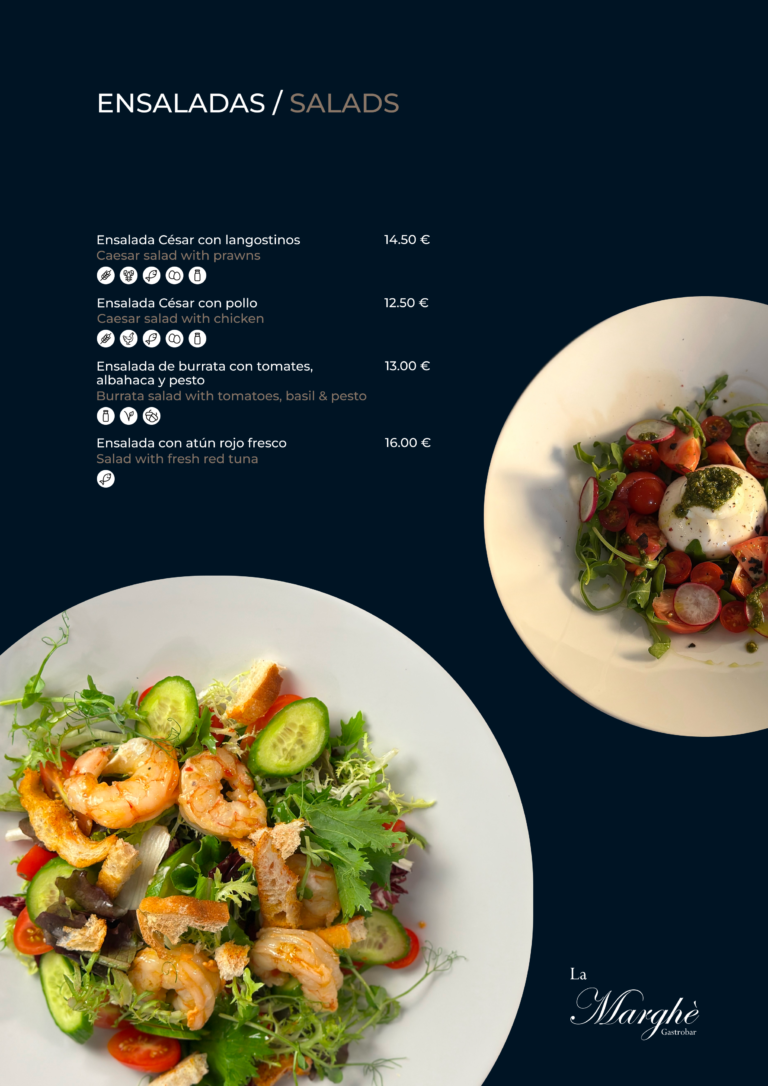 En La Marghè, cada sabor tiene intención. Nuestra carta combina la tierra y el mar. Platos frescos y propuestas que respetan el producto y sorprenden al paladar.